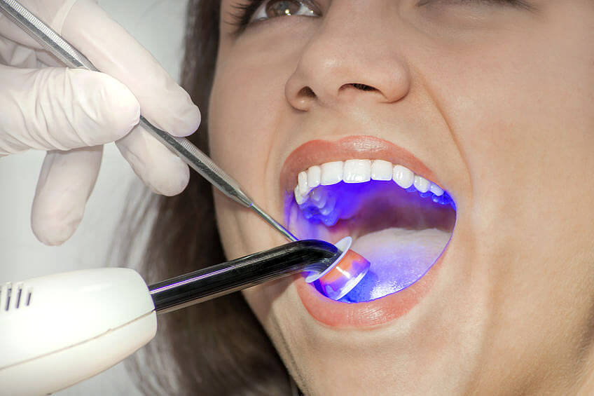Za sanacijo uporabljamo bele kompozitne materiale .